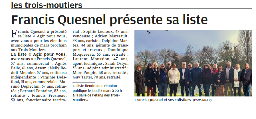 Extrait du conseil municipal des Trois-Moutiers du mercredi 4 février